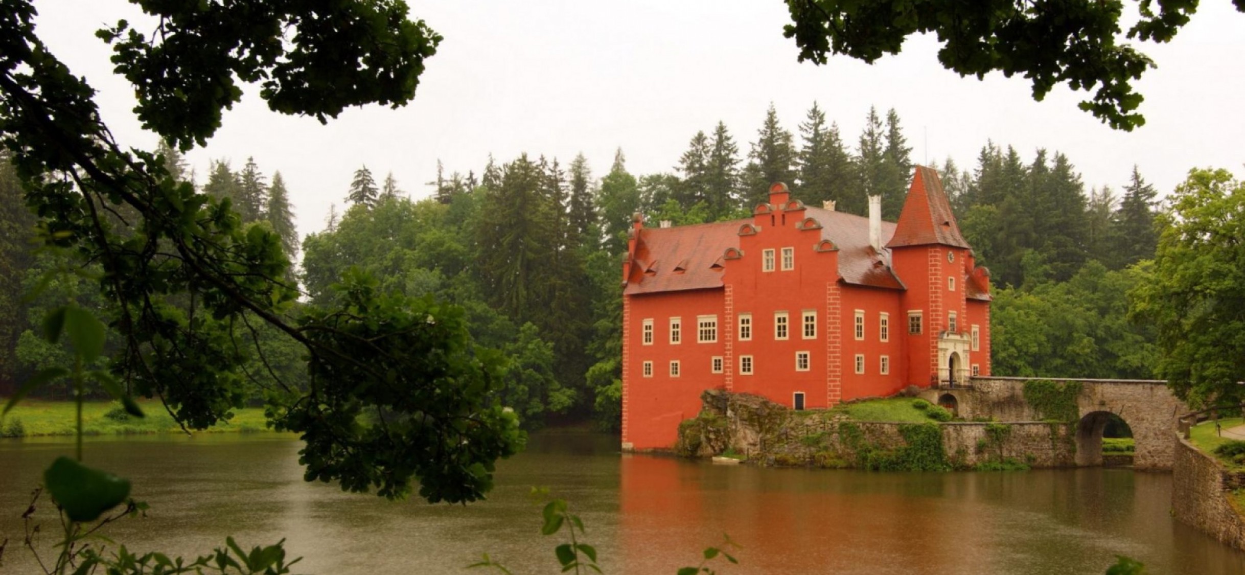 Beautiful castle on a lake in rain HD Wallpaper - iPhone X