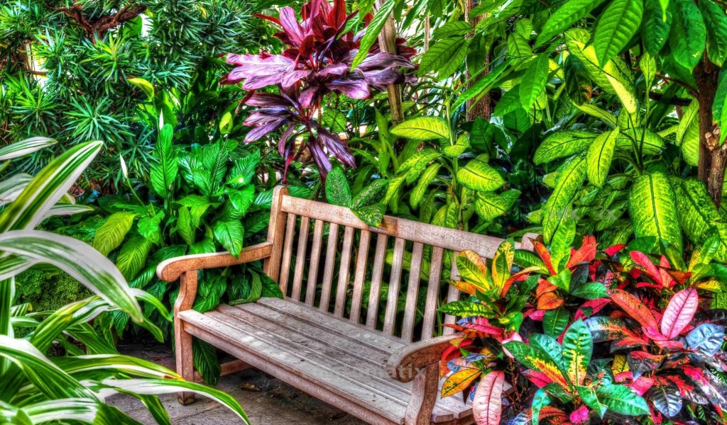 Beautiful Garden Bench HD Wallpaper - 1024x600