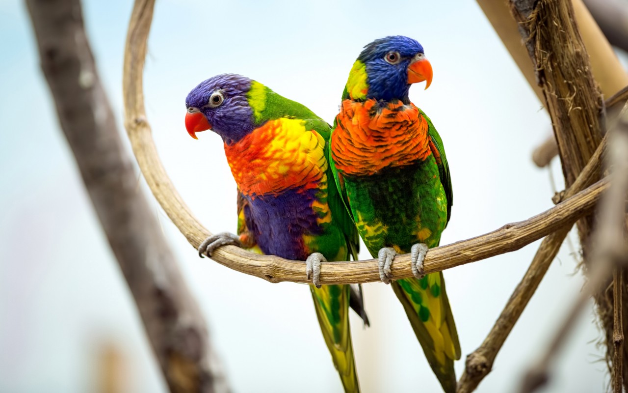 Beautiful Green & colorful Parrots Wallpaper - 1280x800