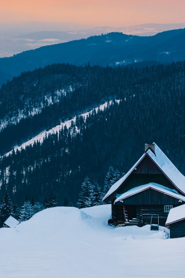 Beautiful house at the Alps HD Wallpaper - iPhone 4 / 4S / iPod