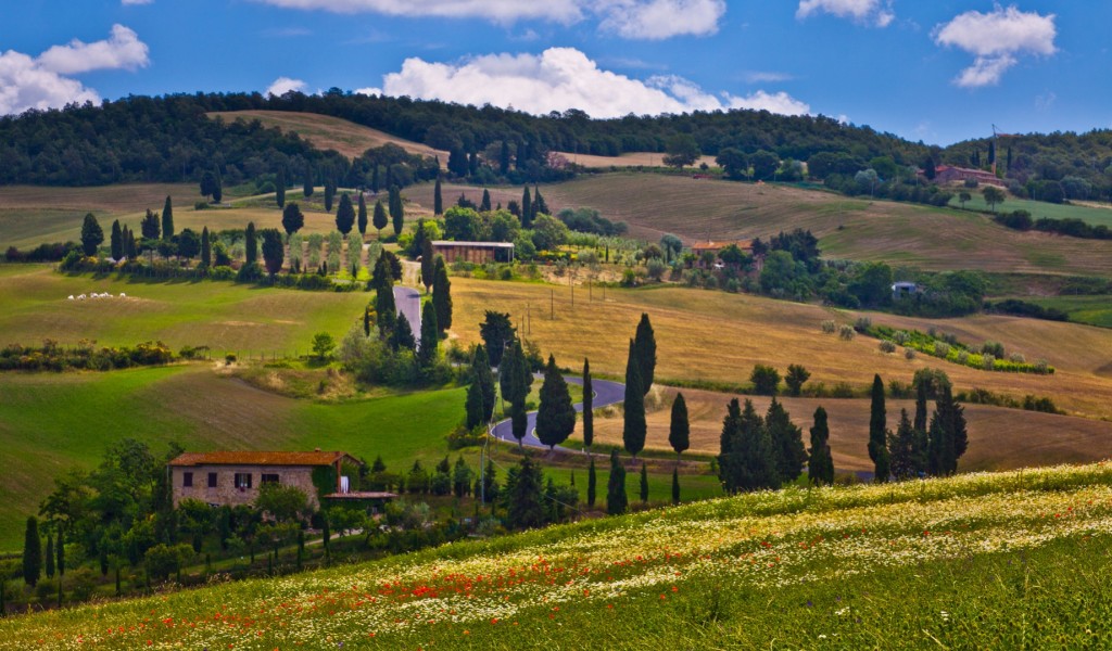 Beautiful italian farms on a hill HD Wallpaper - 1024x600
