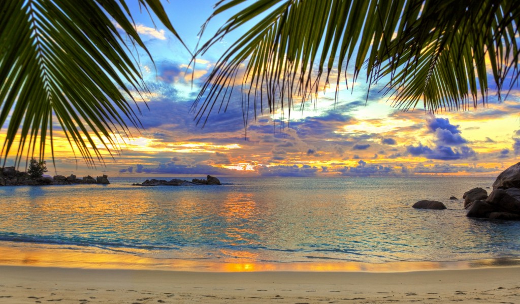 Beautiful palm trees at the beach HD Wallpaper - 1024x600