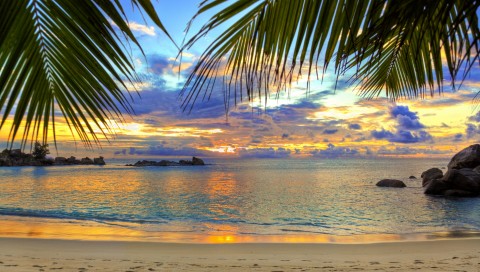 Beautiful palm trees at the beach HD Wallpaper - 480x272 PSP