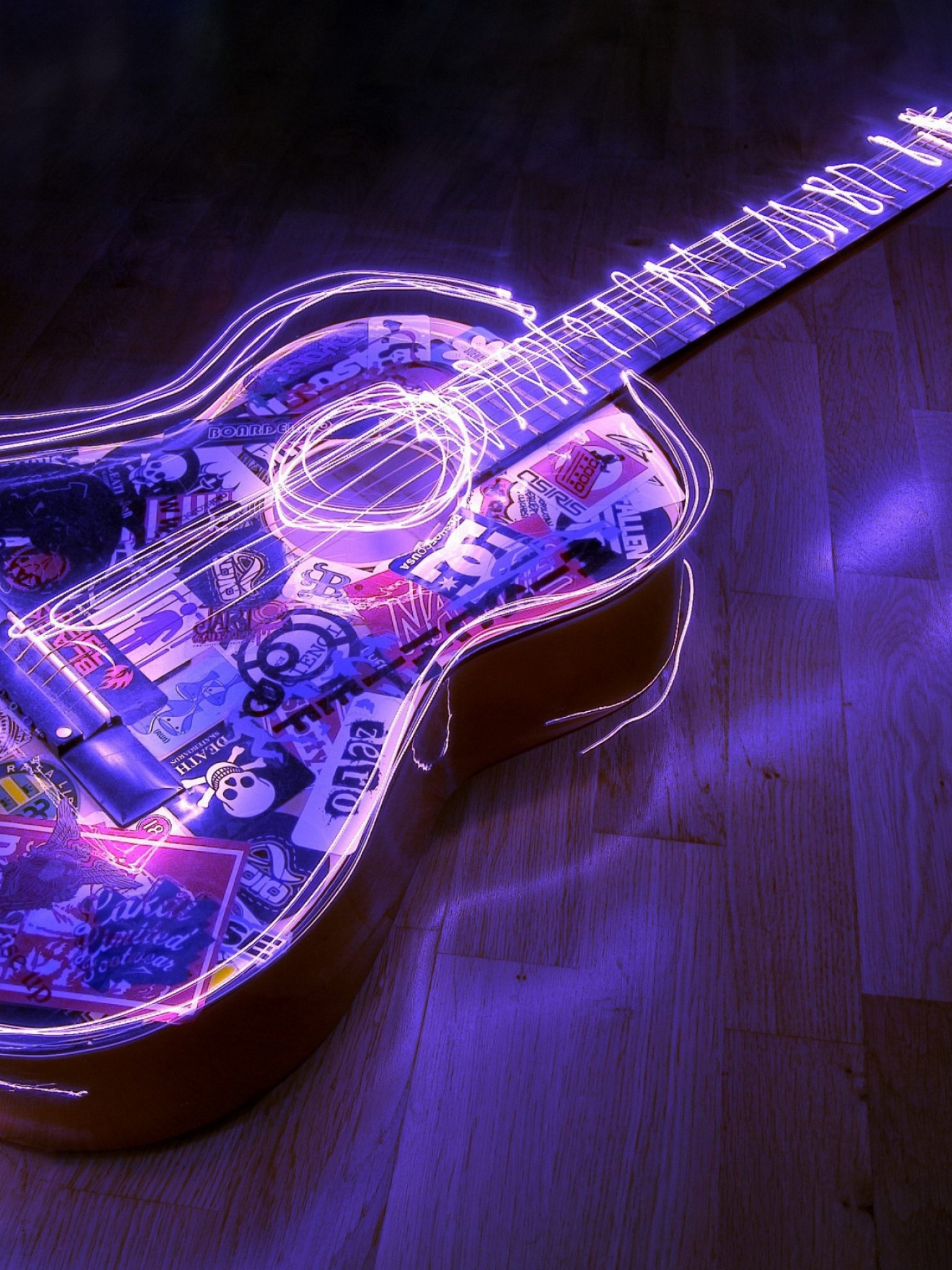 Beautiful Purple Lit Guitar Hd Wallpaper for Desktop and Mobiles - Retina iPad