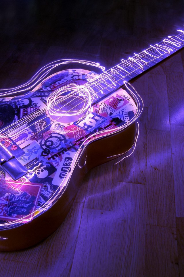 Beautiful Purple Lit Guitar Hd Wallpaper for Desktop and Mobiles - iPhone 4 / 4S / iPod