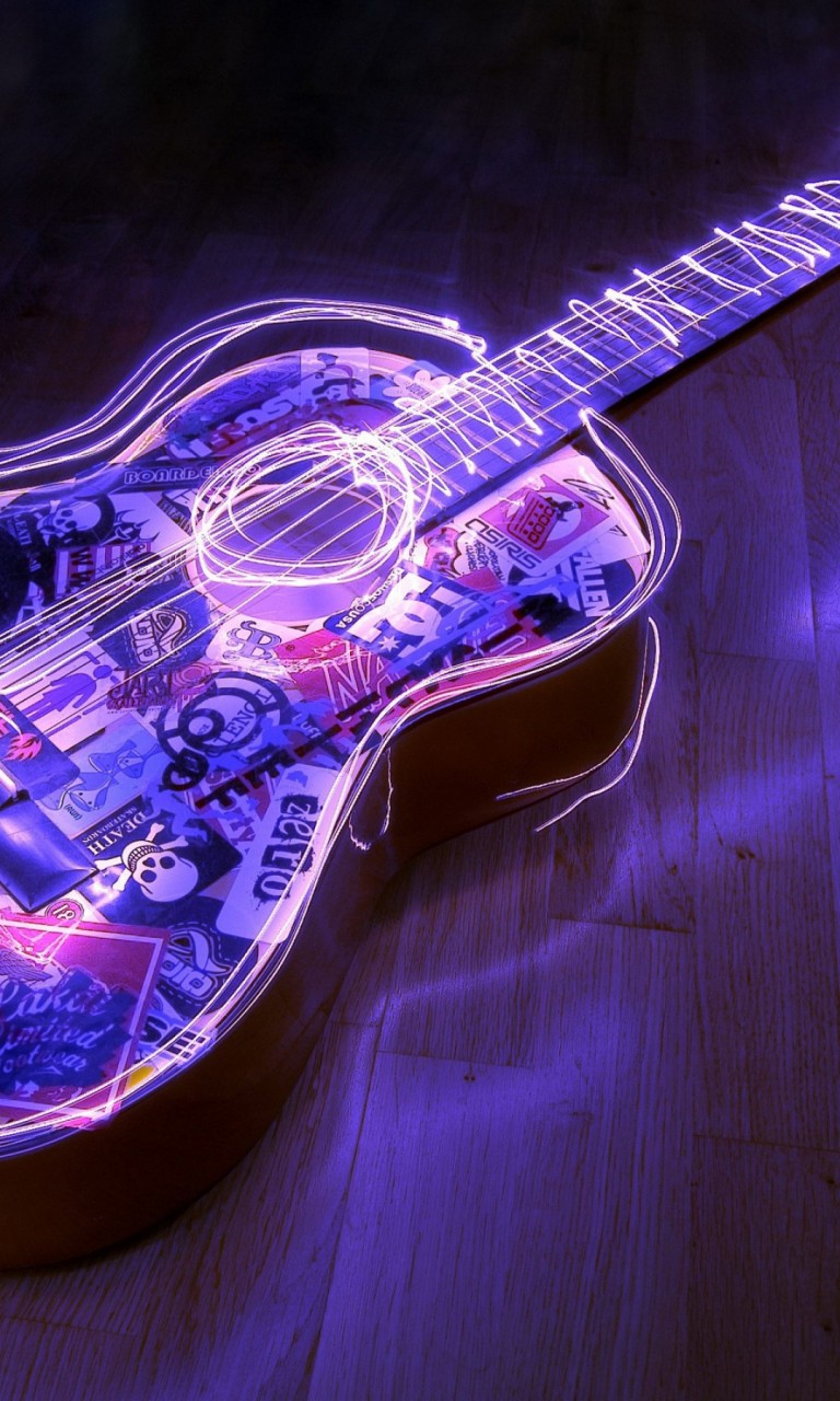 Beautiful Purple Lit Guitar Hd Wallpaper for Desktop and Mobiles - 768x1280