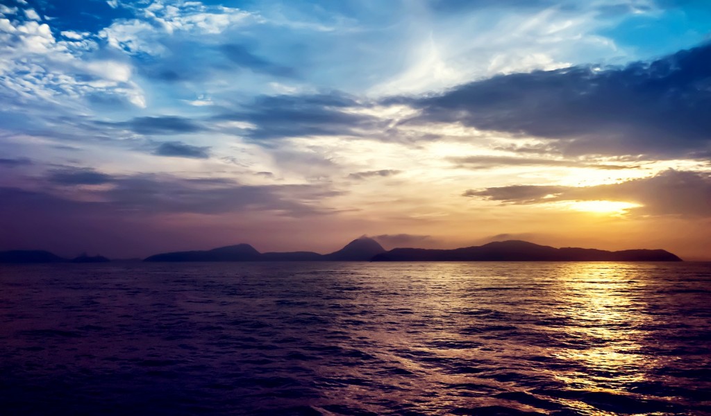 Beautiful sunset at the sea HD Wallpaper - 1024x600