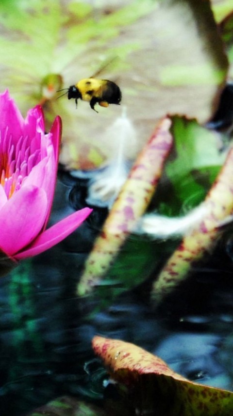Bee on a waterlily HD Wallpaper - 480x854