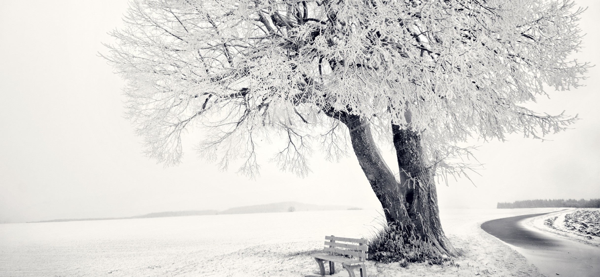 Bench near the sea covered in snow HD Wallpaper - iPhone X