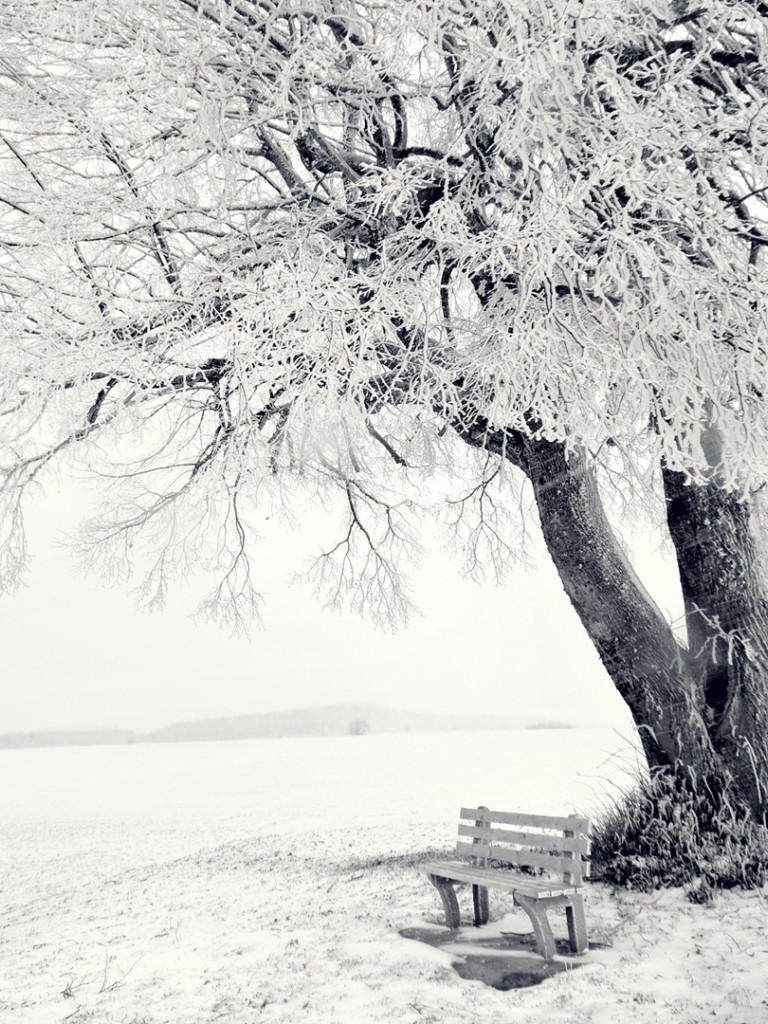 Bench near the sea covered in snow HD Wallpaper - Non-retina iPad