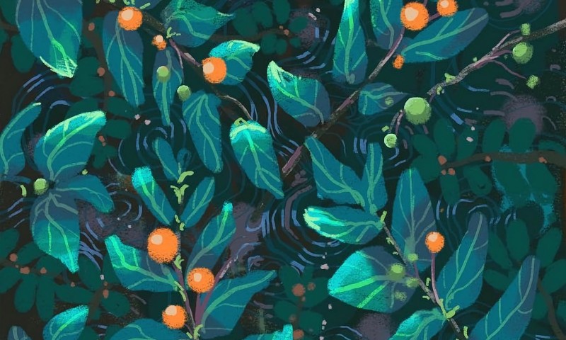 Berries water painting HD Wallpaper - 800x480
