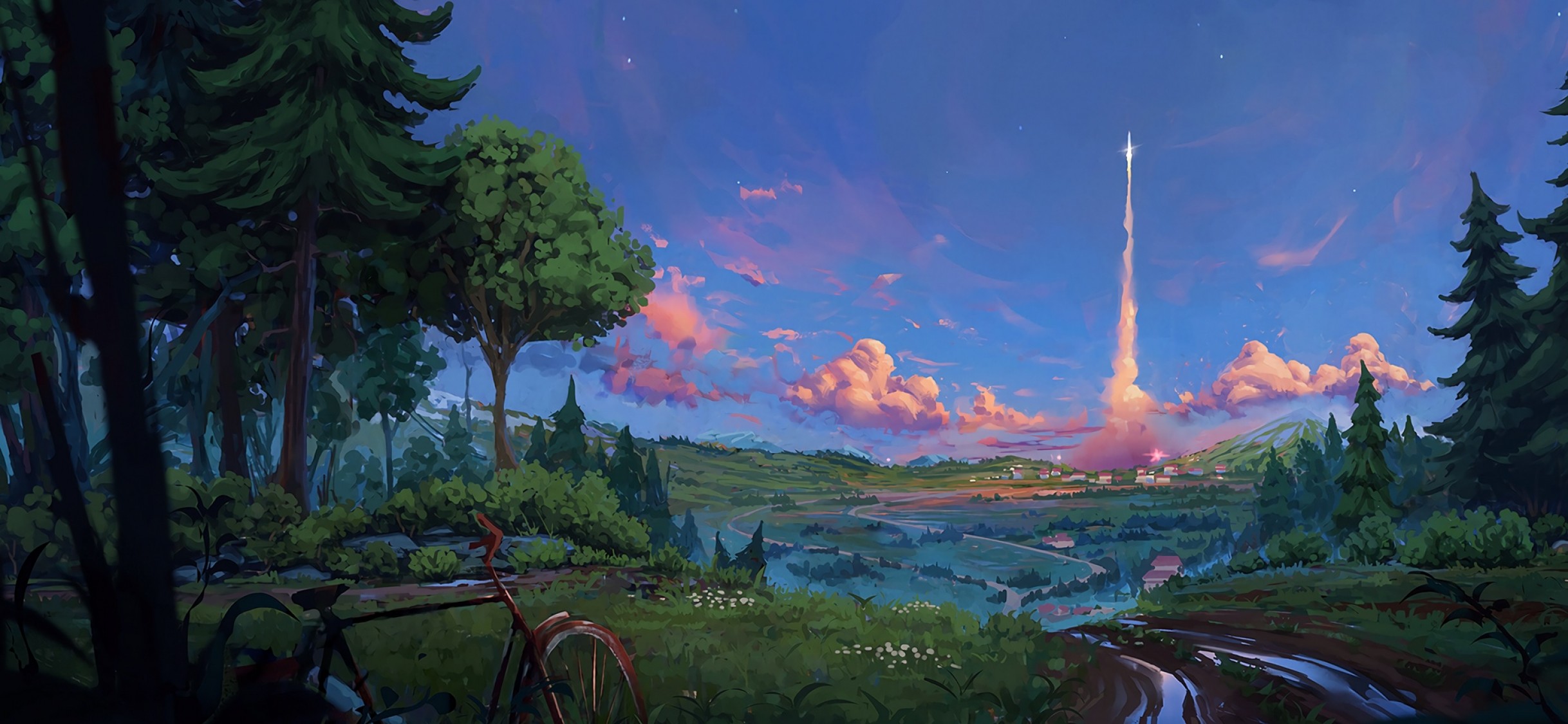 Bicycle in the forest at summer HD Wallpaper - iPhone X