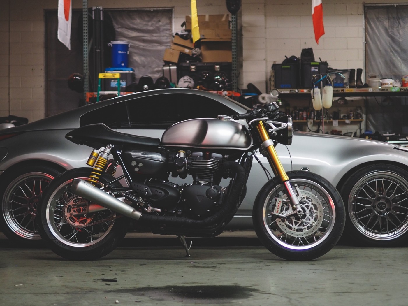 Bike & Car in the garage HD Wallpaper - 1400x1050