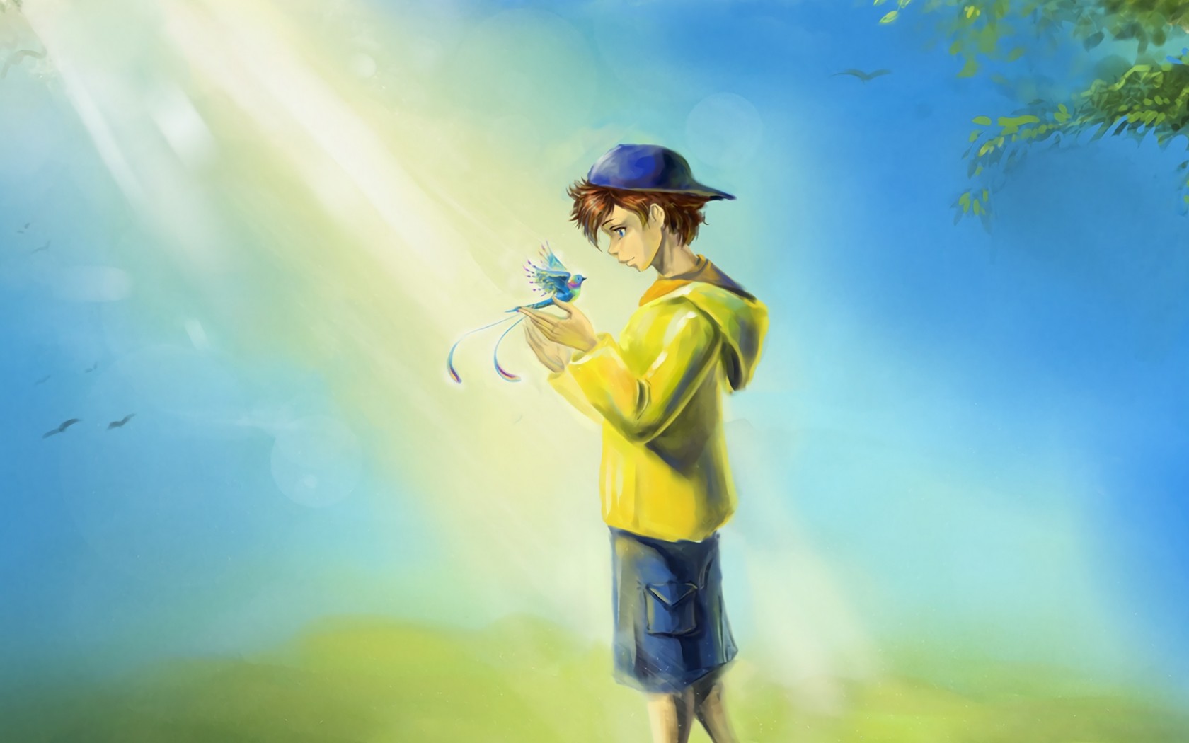 Bird standing at a boy hands HD Wallpaper - 1680x1050