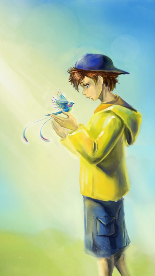 Bird standing at a boy hands HD Wallpaper - iPhone 5 / 5S (& iPod)