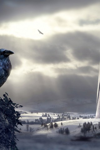 Bird starring at mystical sculptures HD Wallpaper - Older iPhone & iPod