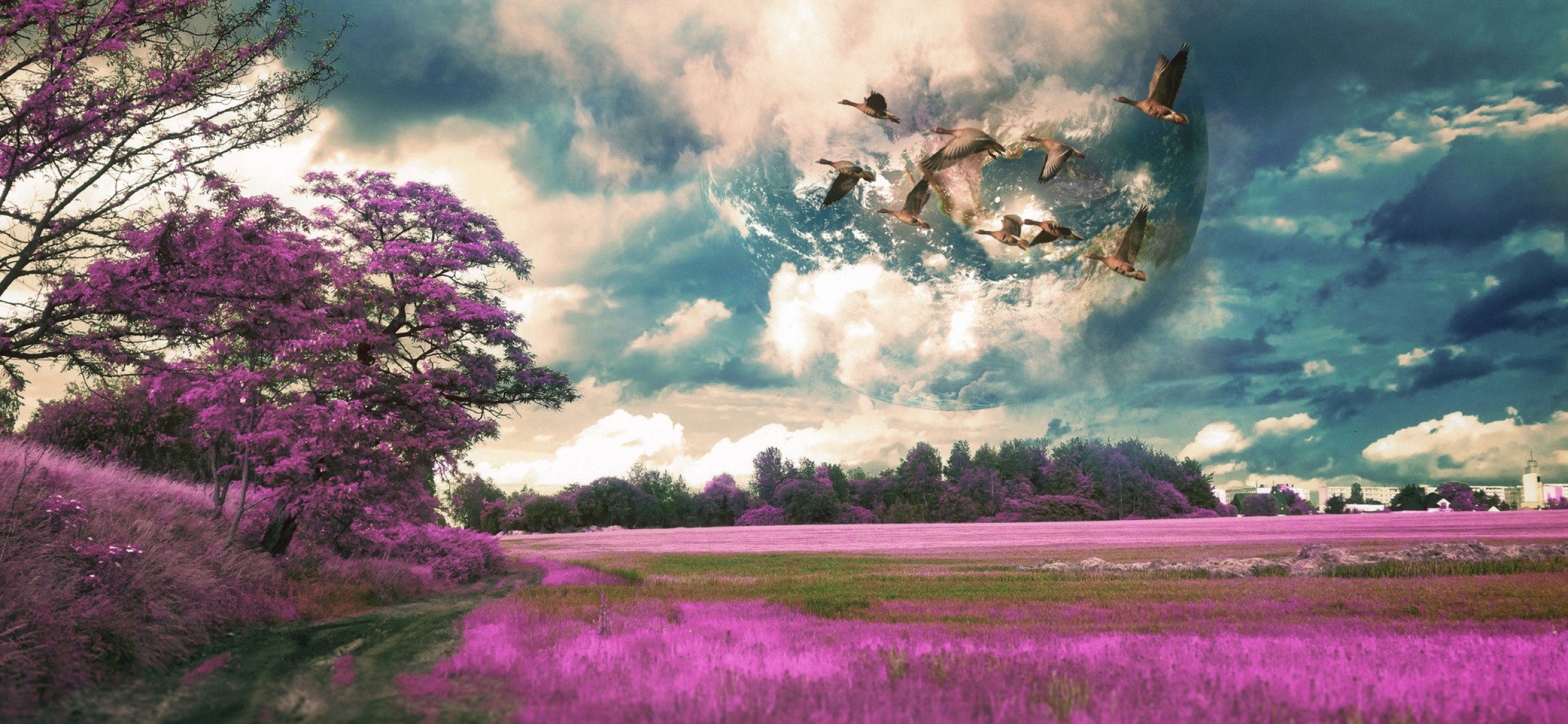 Birds over a field HD Wallpaper - iPhone X