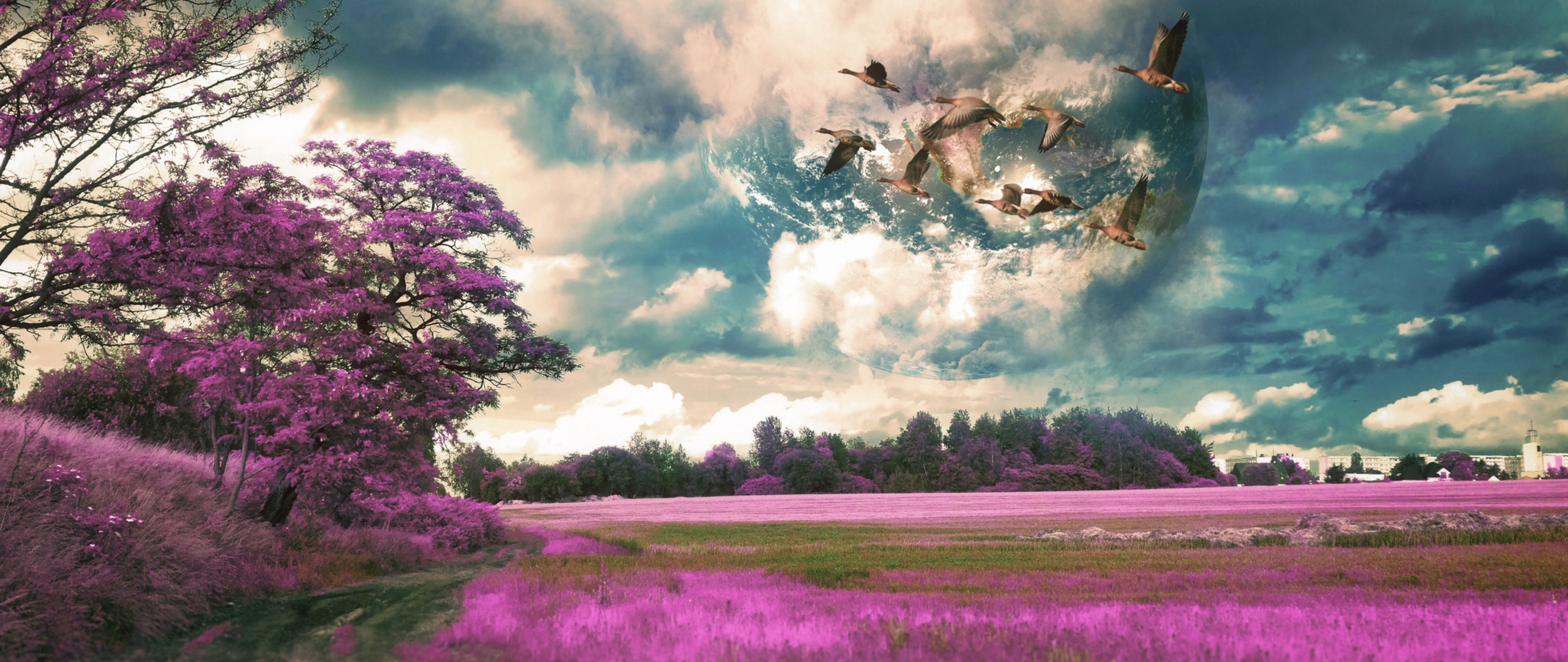 Birds over a field HD Wallpaper - 4K Ultra HD Wide TV