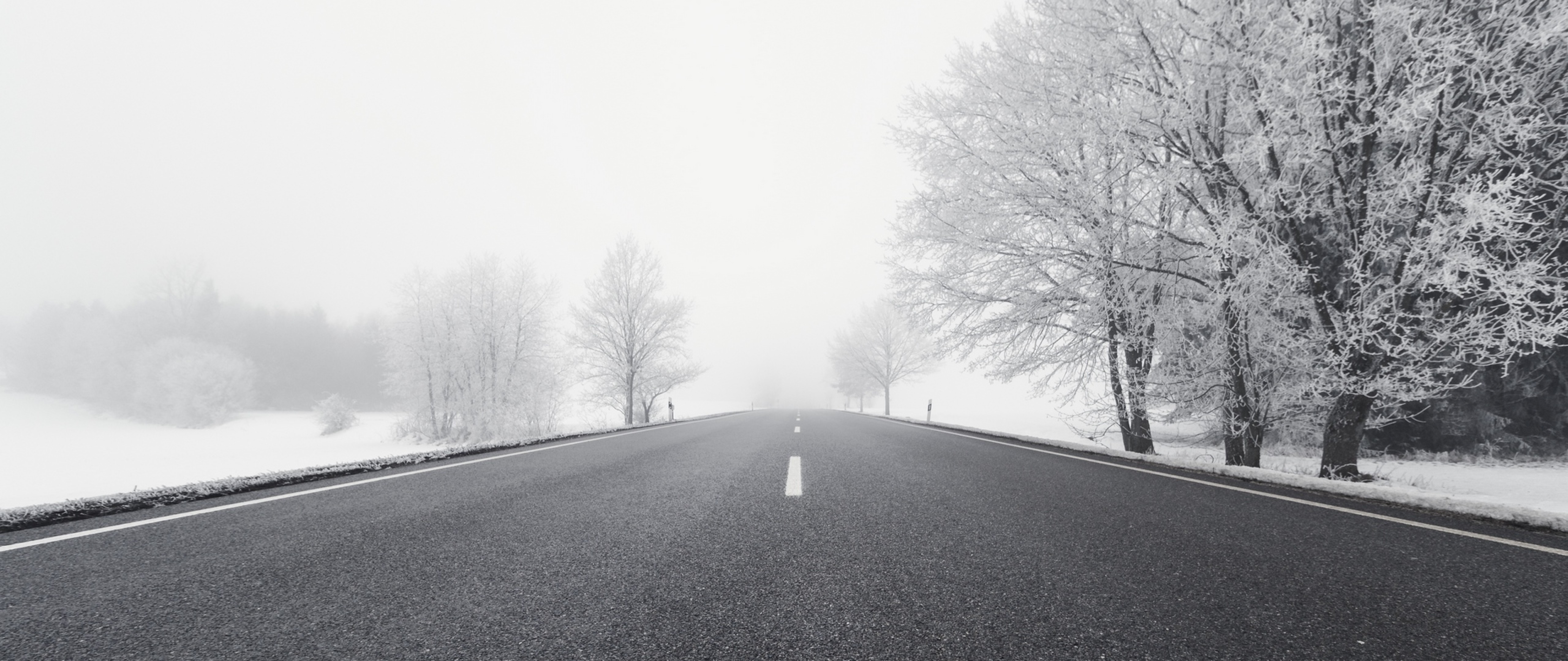 Black and white snowy road HD Wallpaper - 4K Ultra HD Wide TV