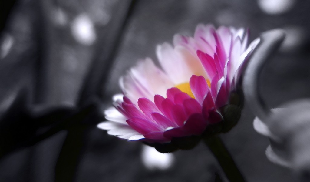 Black And White With Pink Flowers HD Wallpaper - 1024x600