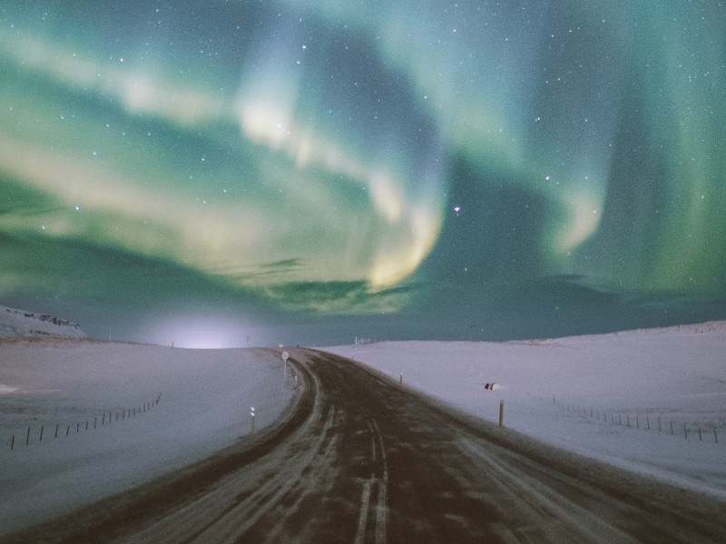 Blue aurora over the road HD Wallpaper - 800x600
