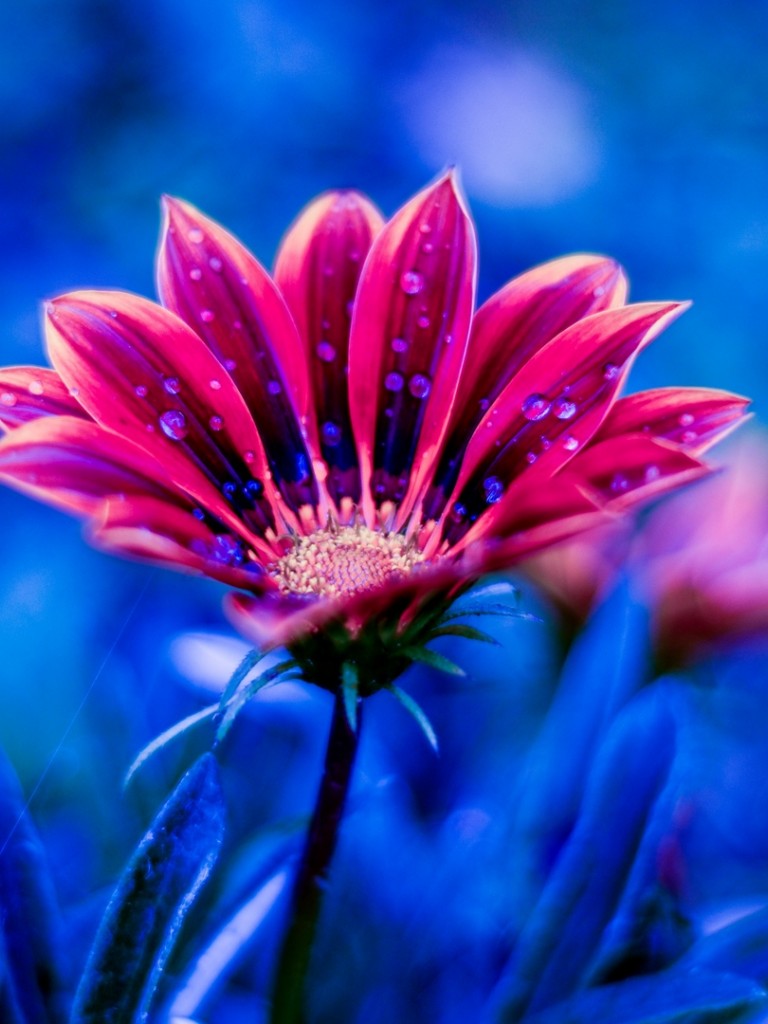 Blue drops over a flower HD Wallpaper - Non-retina iPad