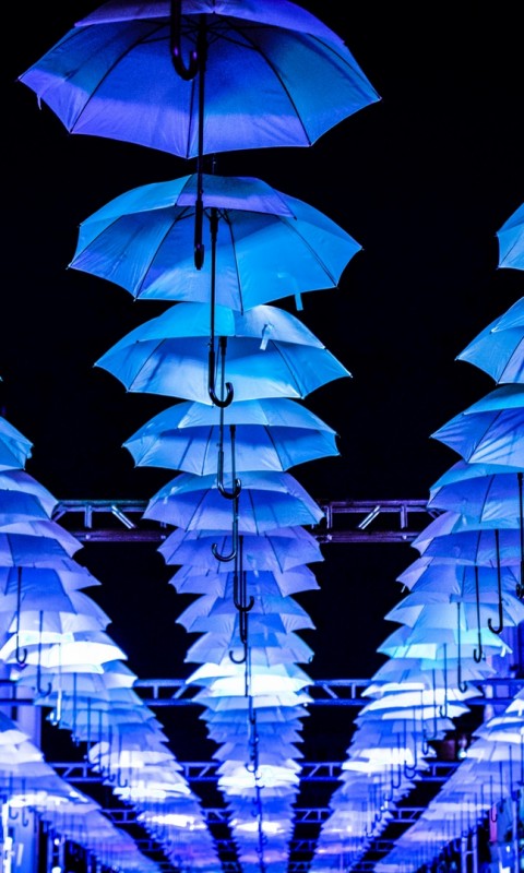 Blue umbrellas HD Wallpaper - 480x800