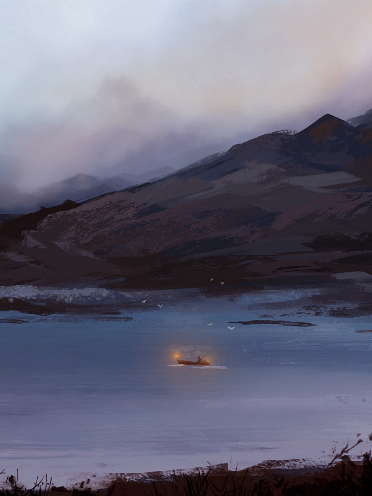 Boat at a foggy lake HD Wallpaper - Retina iPad