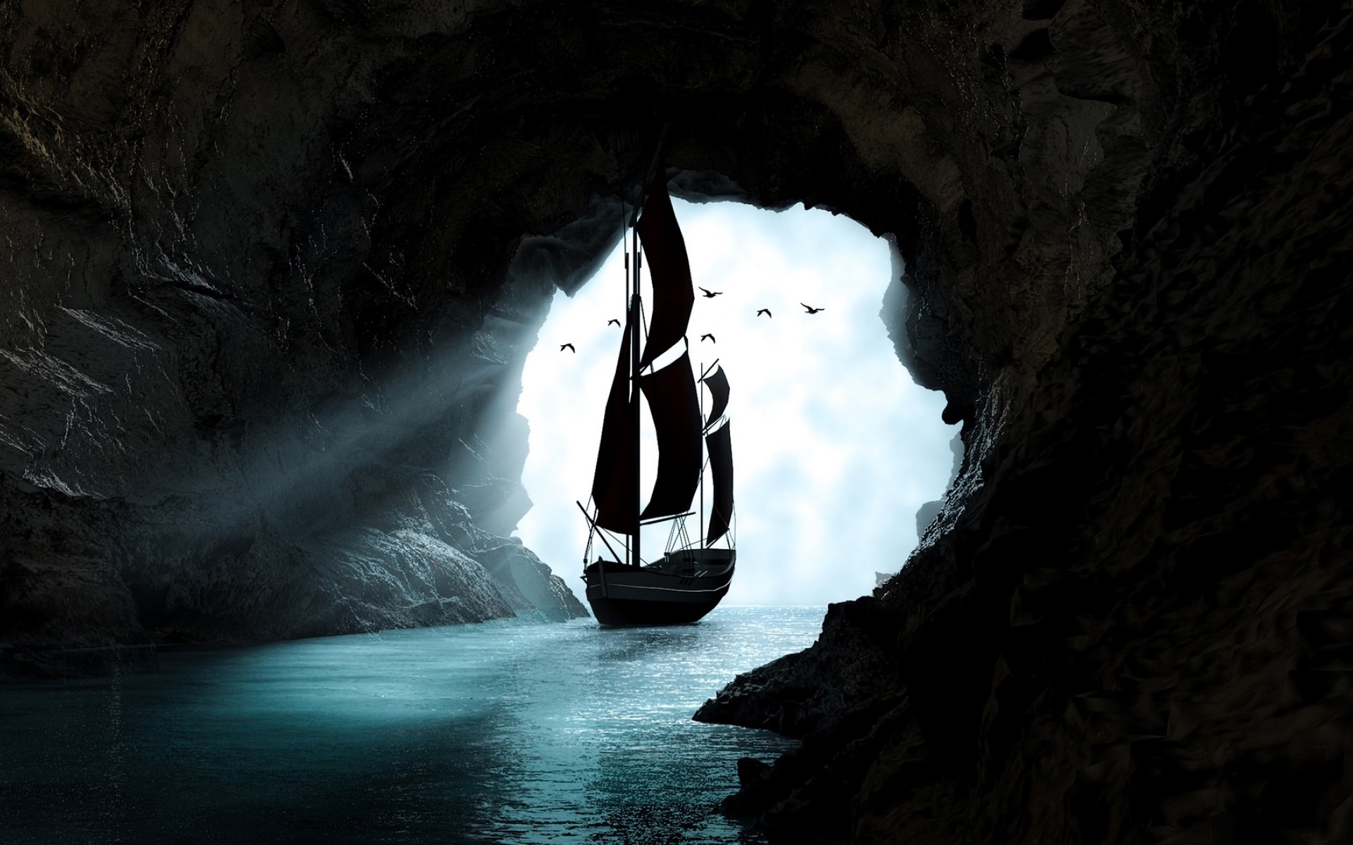 Boat sailing through a cave HD Wallpaper - 1920x1200