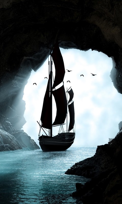 Boat sailing through a cave HD Wallpaper - 480x800