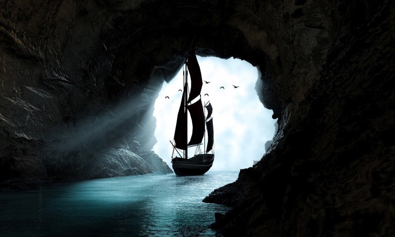 Boat sailing through a cave HD Wallpaper - 800x480