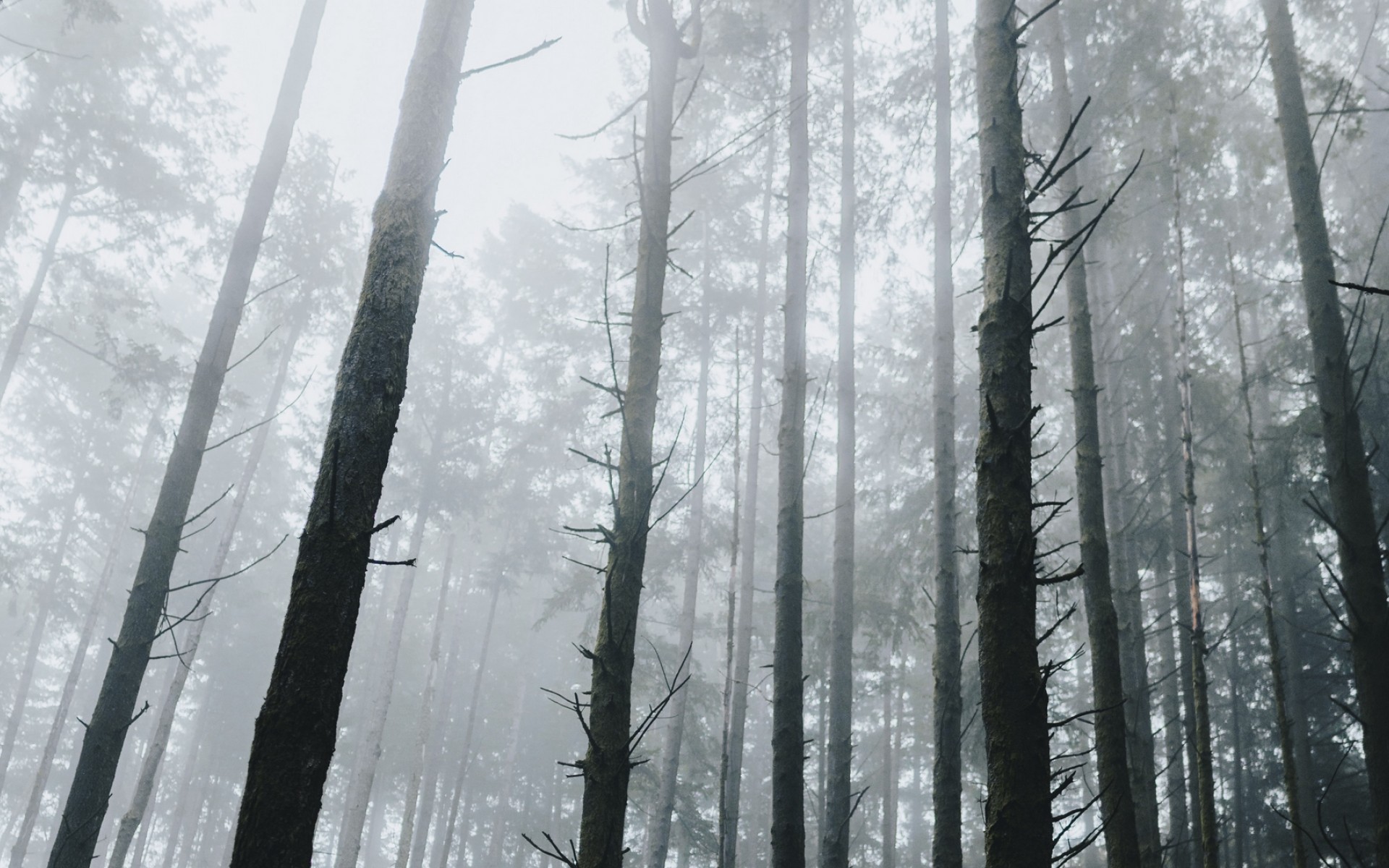 Bottom view of a fogy mountain HD Wallpaper - 1920x1200