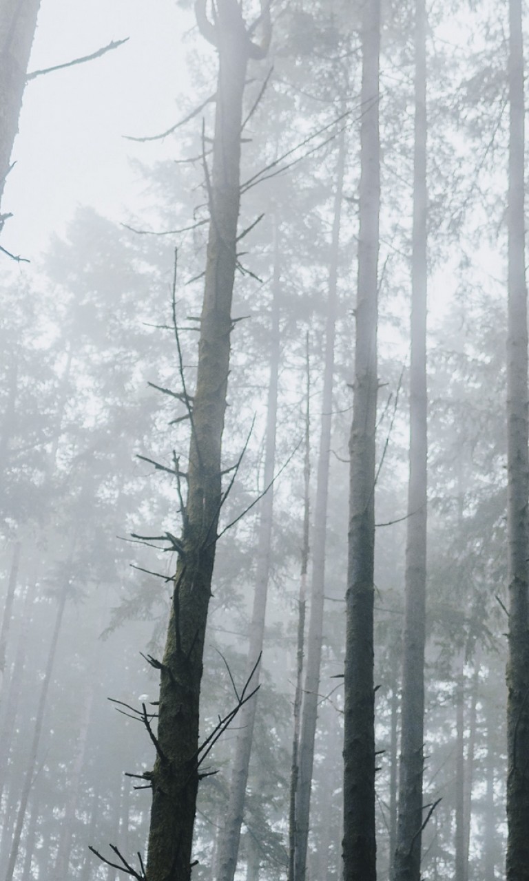 Bottom view of a fogy mountain HD Wallpaper - 768x1280