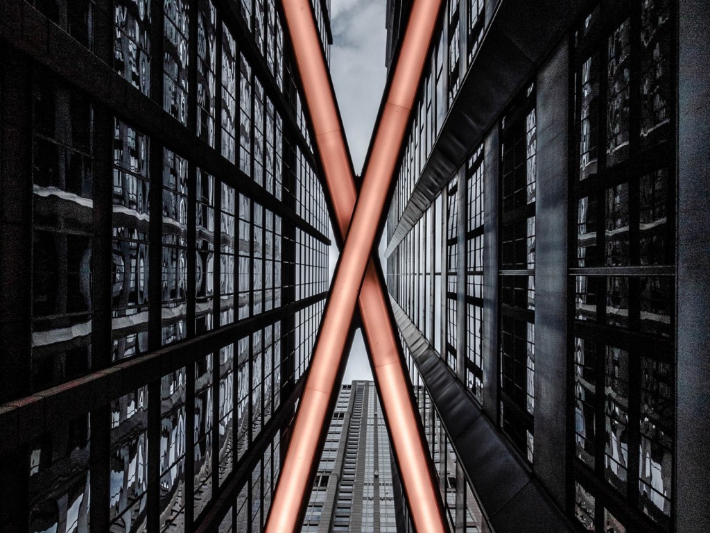 Bottom view of skyscrapers HD Wallpaper - 1024x768