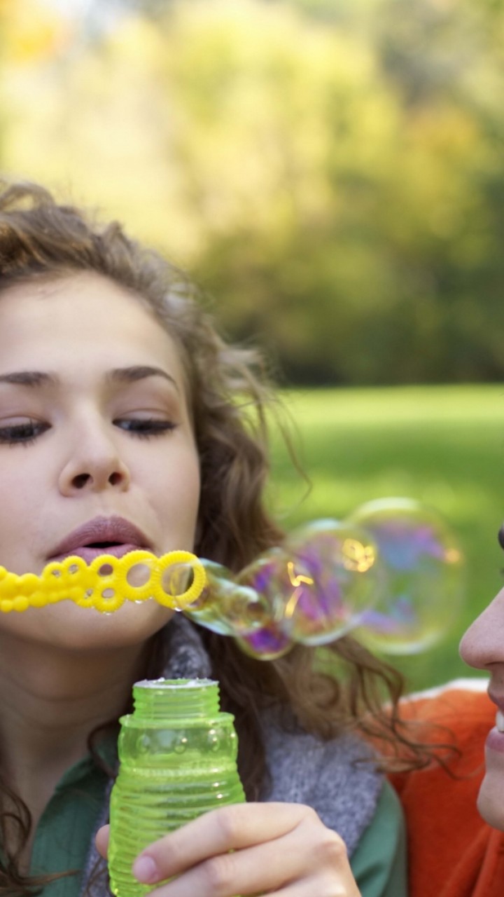 Boy and girl making bubbles HD Wallpaper - 720x1280