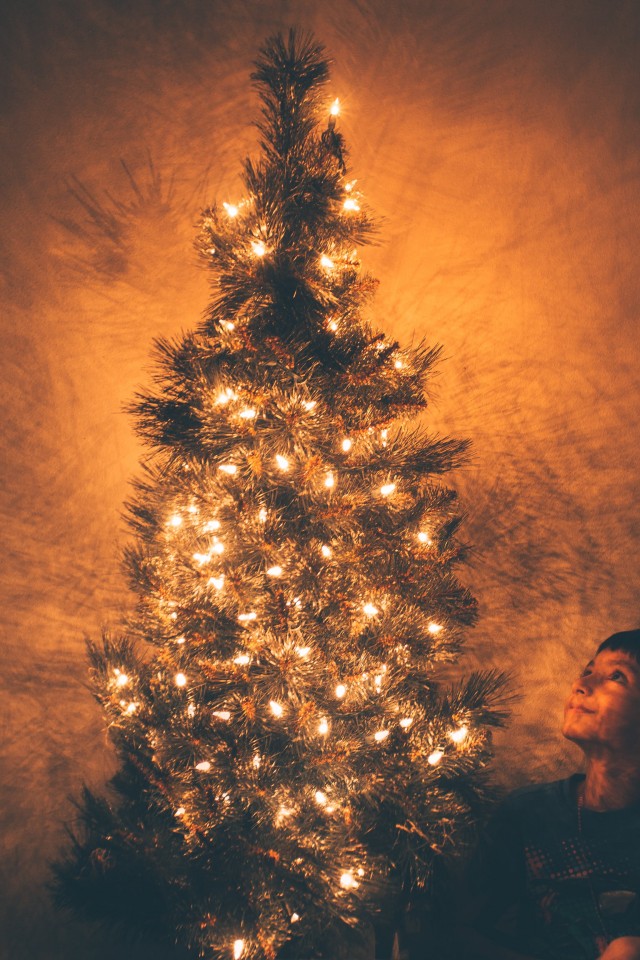 Boy Beside Christmas Tree HD Wallpaper - iPhone 4 / 4S / iPod