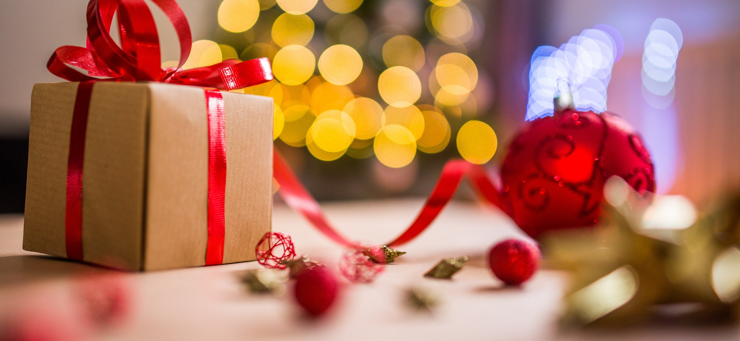 Brown Christmas Present With Red Ribbon HD Wallpaper - iPhone X