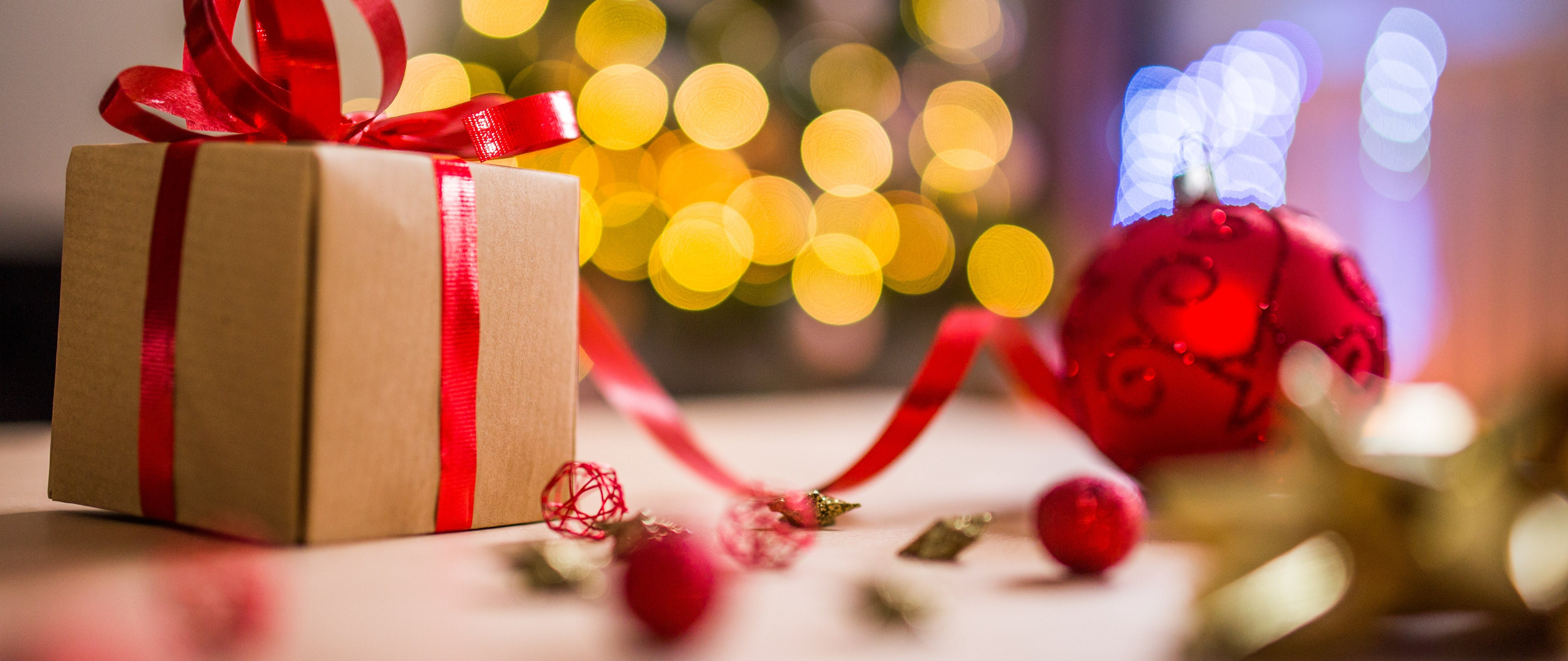 Brown Christmas Present With Red Ribbon HD Wallpaper - 4K Ultra HD Wide TV