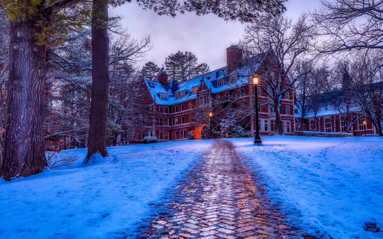 Brown Concrete House on Snow Path HD Wallpaper - 1280x800