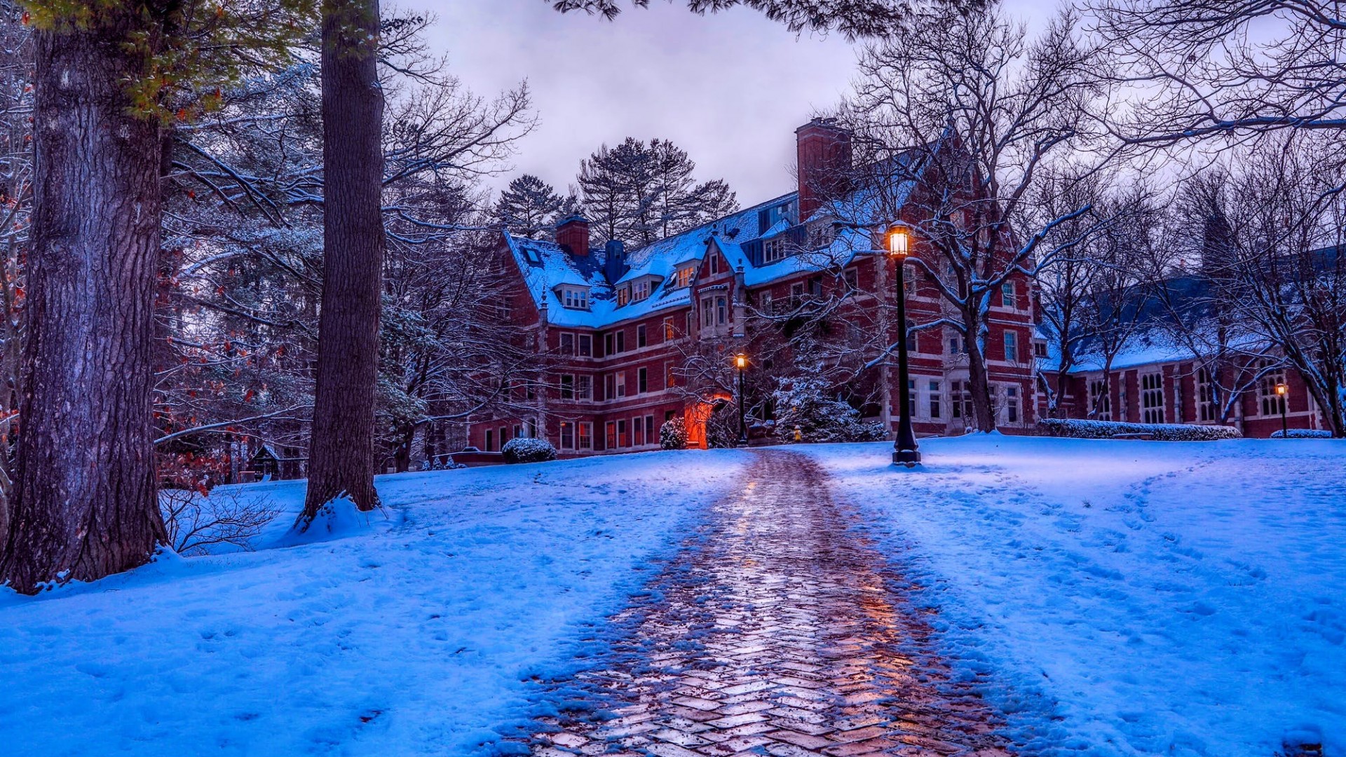 Brown Concrete House on Snow Path HD Wallpaper - iPhone 7 Plus / iPhone 8 Plus