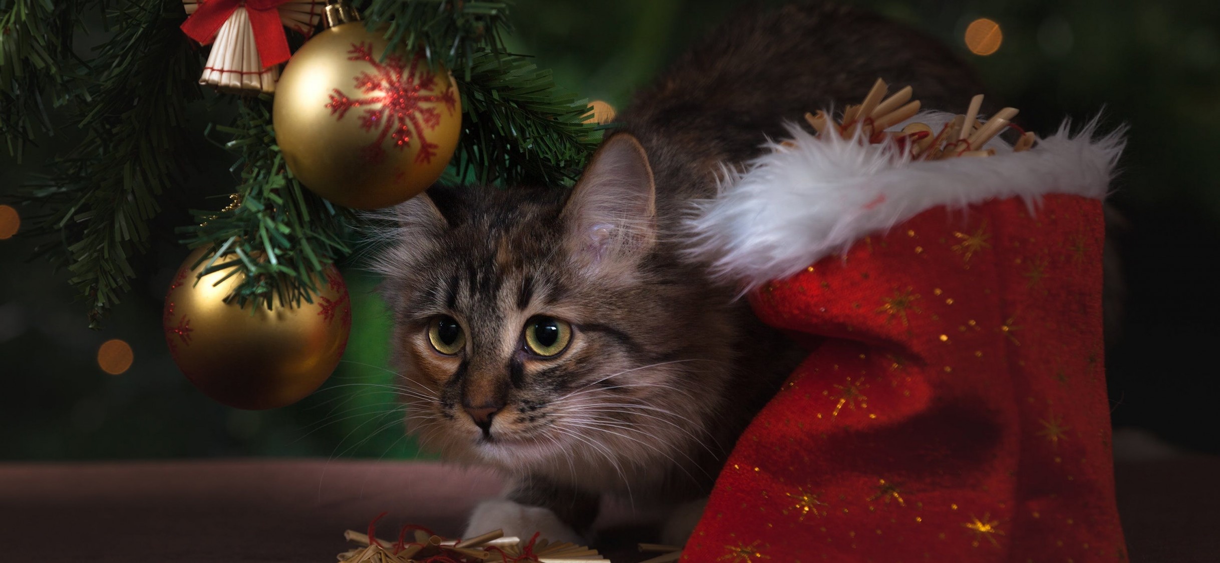 Brown Tabby Cat Beside Christmas Tree HD Wallpaper - iPhone X