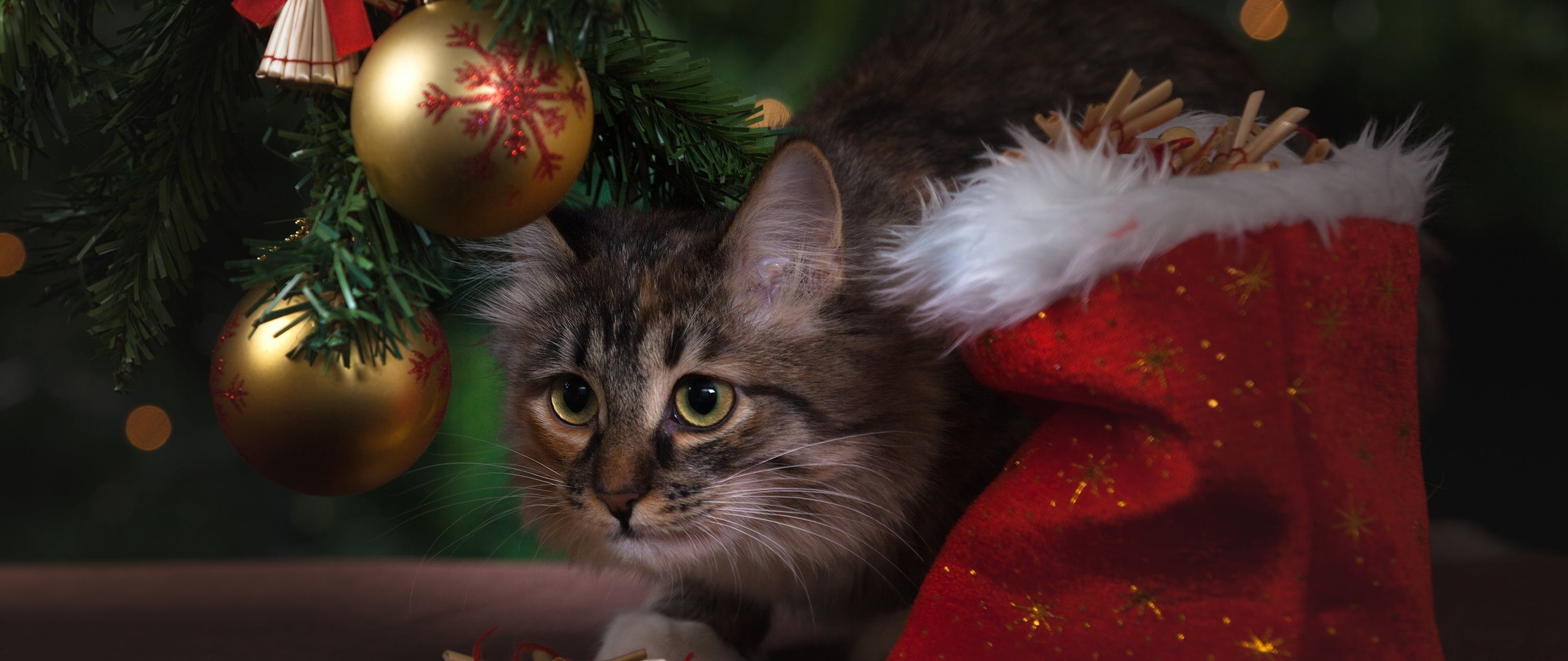 Brown Tabby Cat Beside Christmas Tree HD Wallpaper - 4K Ultra HD Wide TV