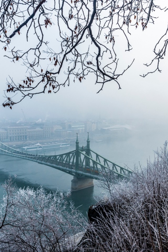 Budapest bridge covered in snow HD Wallpaper - iPhone 4 / 4S / iPod