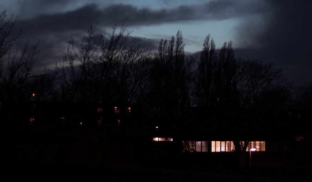 Building lights at the dark HD Wallpaper - 1024x600