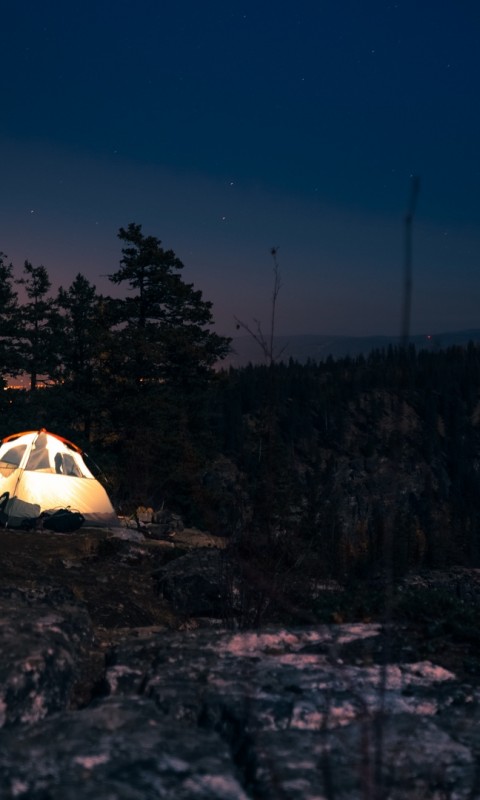 Camping tent at night HD Wallpaper - 480x800