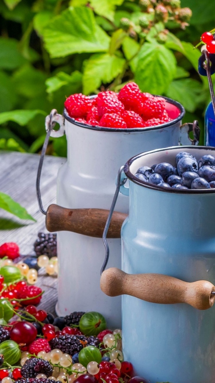 Cans full of currants rasberries and blackberries HD Wallpaper - iPhone 6 / 6S