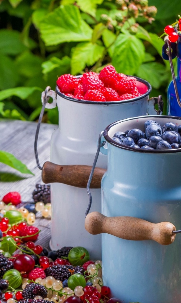 Cans full of currants rasberries and blackberries HD Wallpaper - 768x1280
