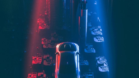 Car flying over city buildings HD Wallpaper - 480x272 PSP