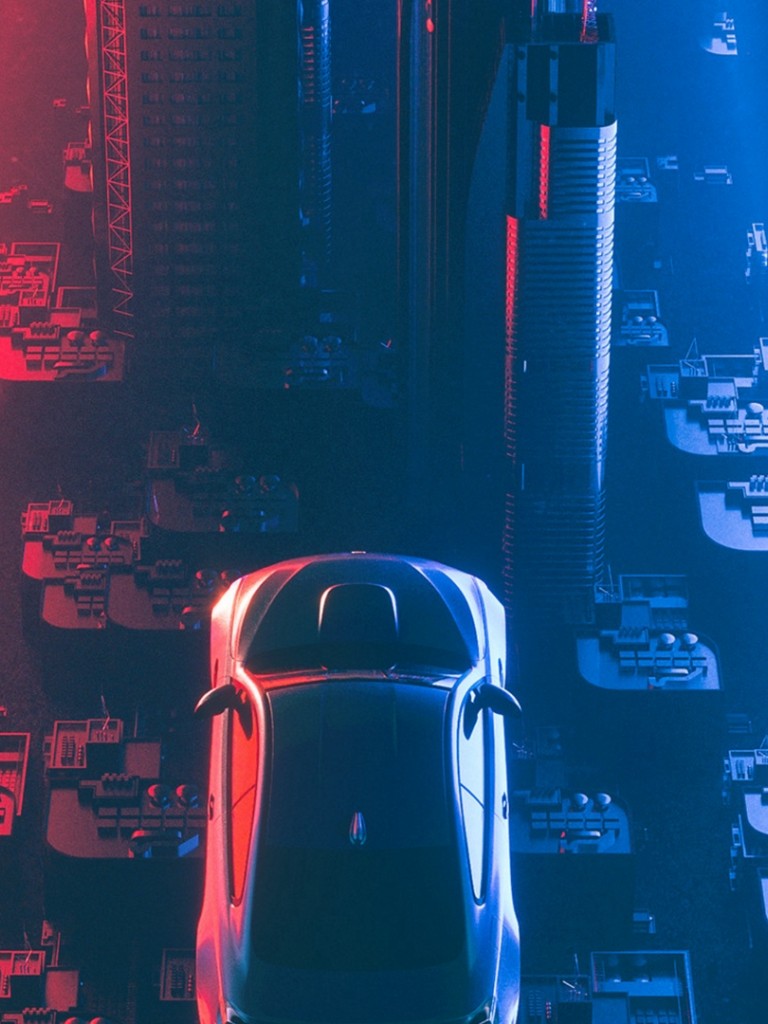 Car flying over city buildings HD Wallpaper - Non-retina iPad