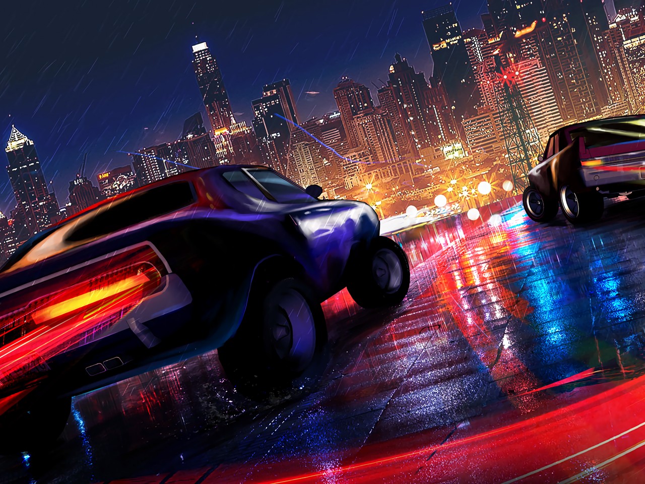 Car lights at wet road HD Wallpaper - 1280x960